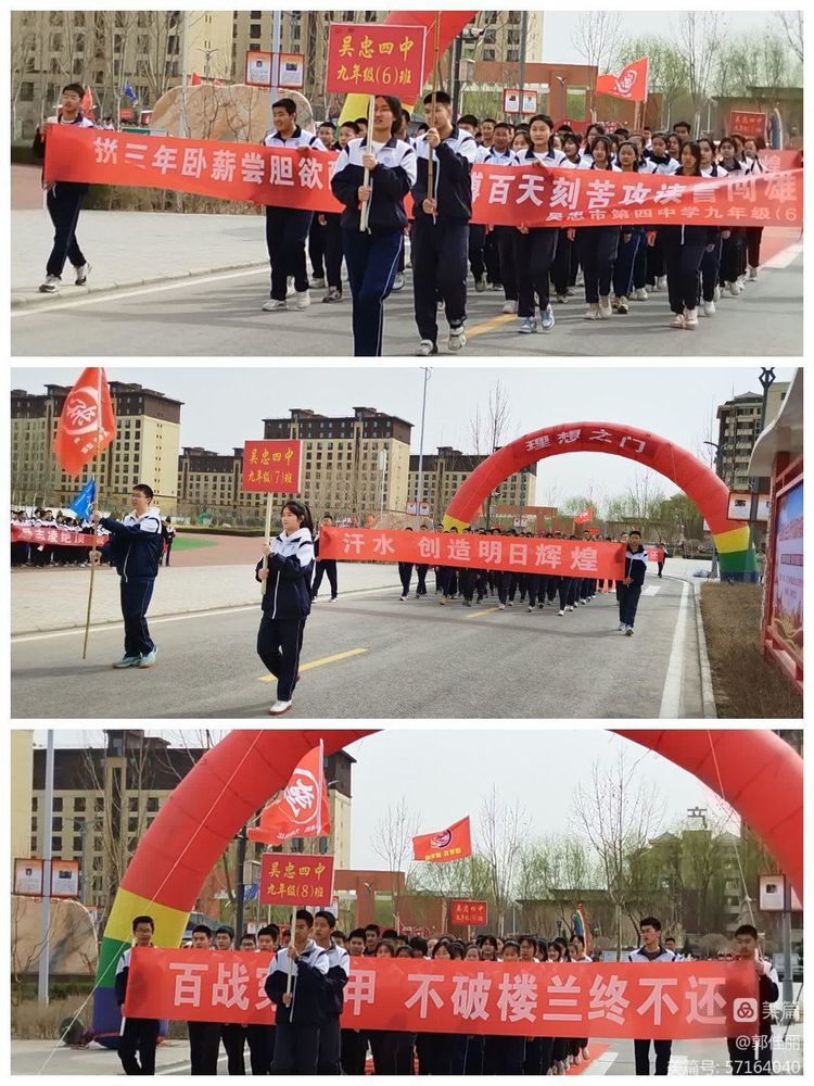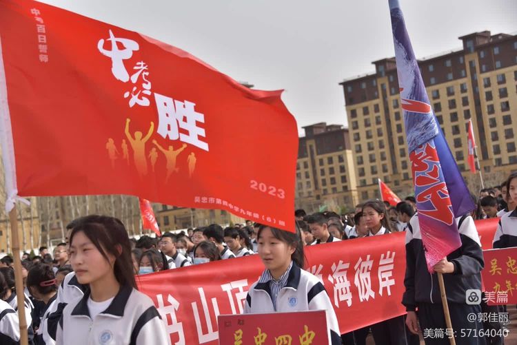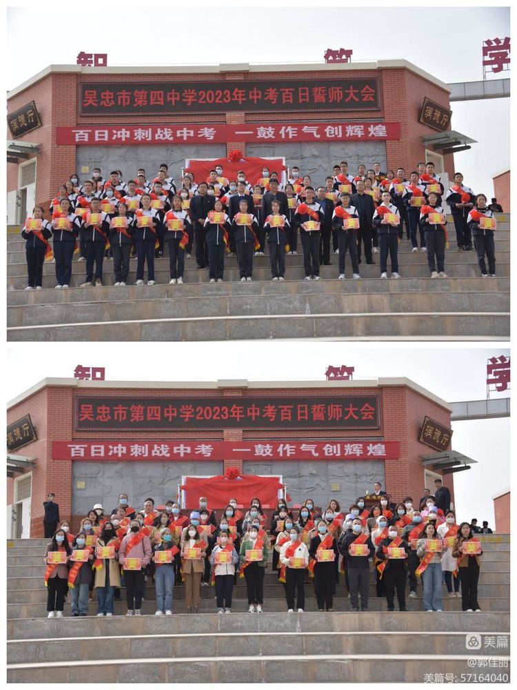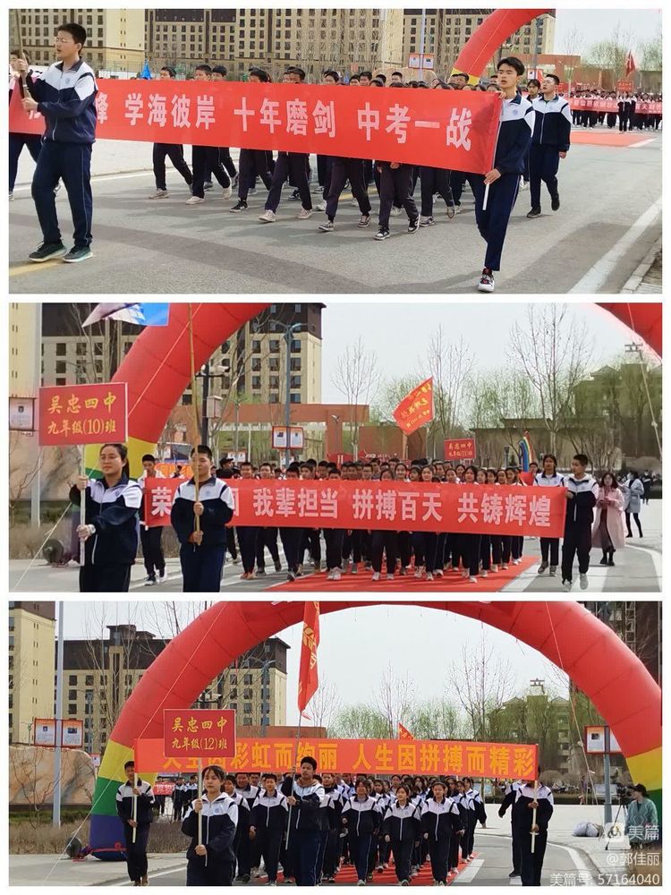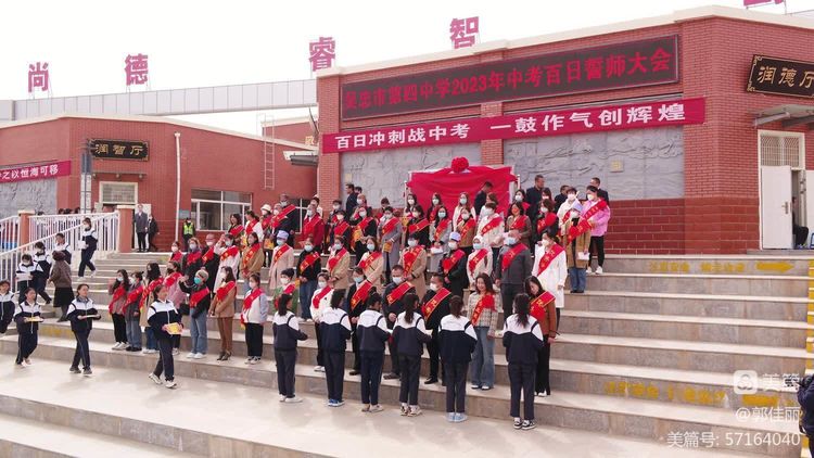 “男儿立志出乡关,学不成名誓不还!”为激发初三师生冲刺中考的雄心壮志,点燃拼搏奋进的万丈豪情,3月23日下午,吴忠市第四中学初三年级隆重举行“冲刺百日,决战中考——2023届初三年级百日誓师大会”。大会由教务主任刘党旗主持,学校党总支书记杨国庆、校长牛克成同志、八中校长蔡小强同志等领导班子成员、九年级全体师生和家长代表参加大会,共为初三学子百日冲刺迎战中考呐喊助威。