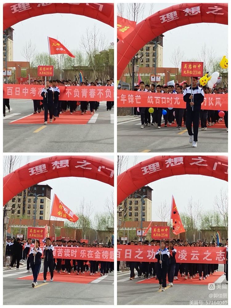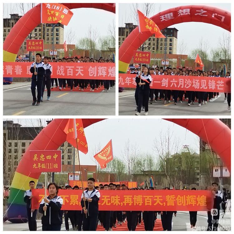 伴着铿锵有力的音乐,九年级各班同学昂首挺胸、自信满满地向理想之门和成功之门走去。震耳欲聋的口号声,响彻云霄。恰同学少年,风华正茂,书生意气,挥斥方遒。指点江山,激扬文字。排山倒海的呐喊,一浪高过一浪。力拔山兮气盖世,这是同学们百日冲刺的决心和斗志。