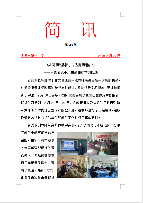 学习新课标,把握新航向 ———固原六中组织新课标学习活动